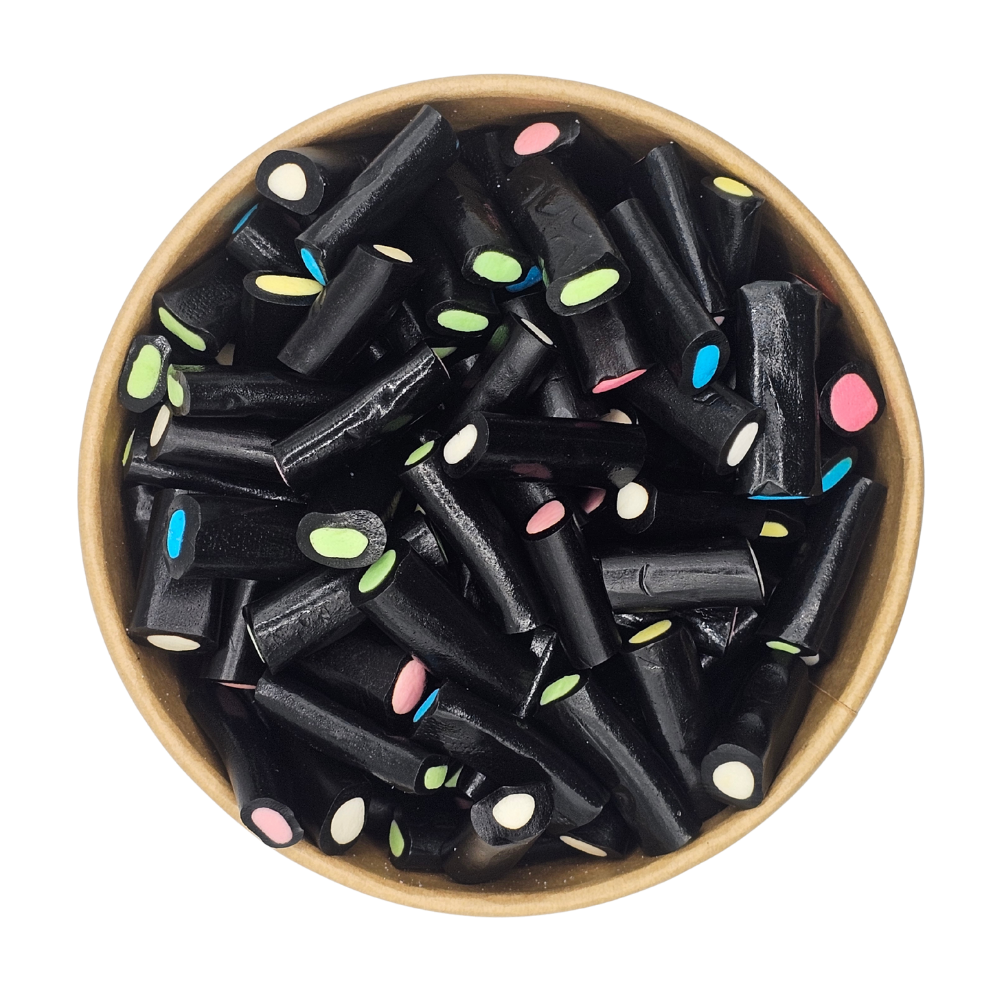 Delight in the unique taste and texture of Barratt Jelly Spogs—chewy liquorice centers coated in a crunchy, aniseed-flavored sugar shell. These iconic pink and blue sweets from the famous Liquorice Allsorts mix are a must-have for any confectionery lover. Perfectly sweet with a subtle spice, they’re a nostalgic bite of pure joy!