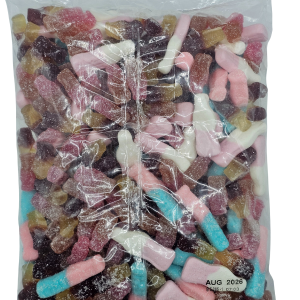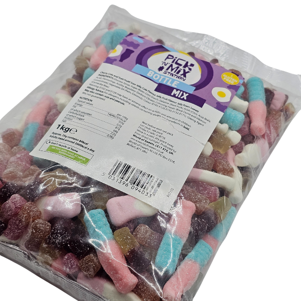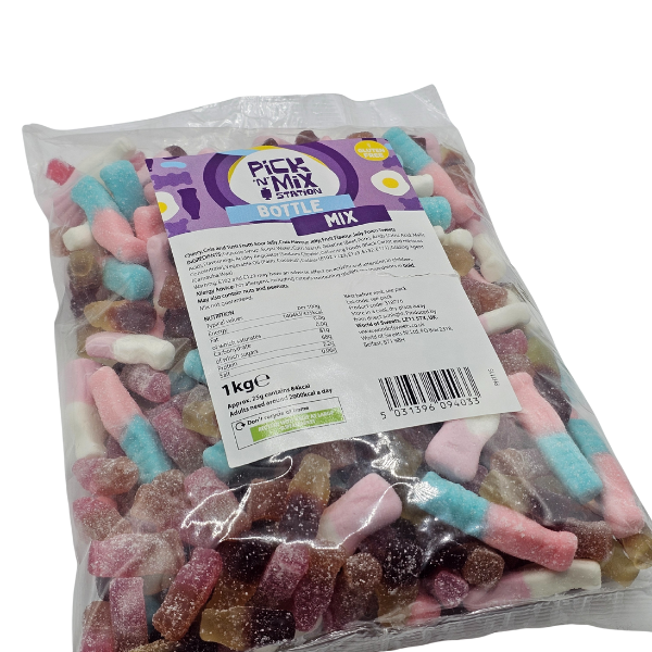- Fizzy Bubblegum Bottles – bubblegum flavoured jelly sweets coated in a fizzy sugar, and packed full of flavour